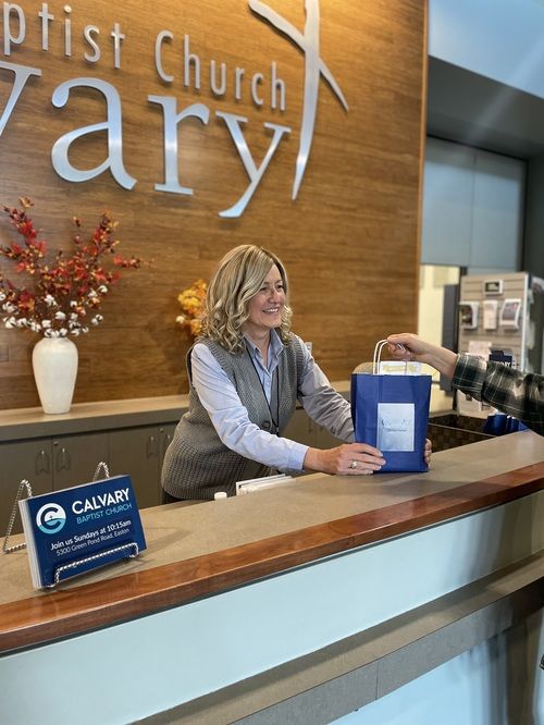 When you enter, you will see a big Welcome Center with people waiting to help you. These friendly people can answer any questions you may have and give you a visitor's pack containing more information about ministries at Calvary.